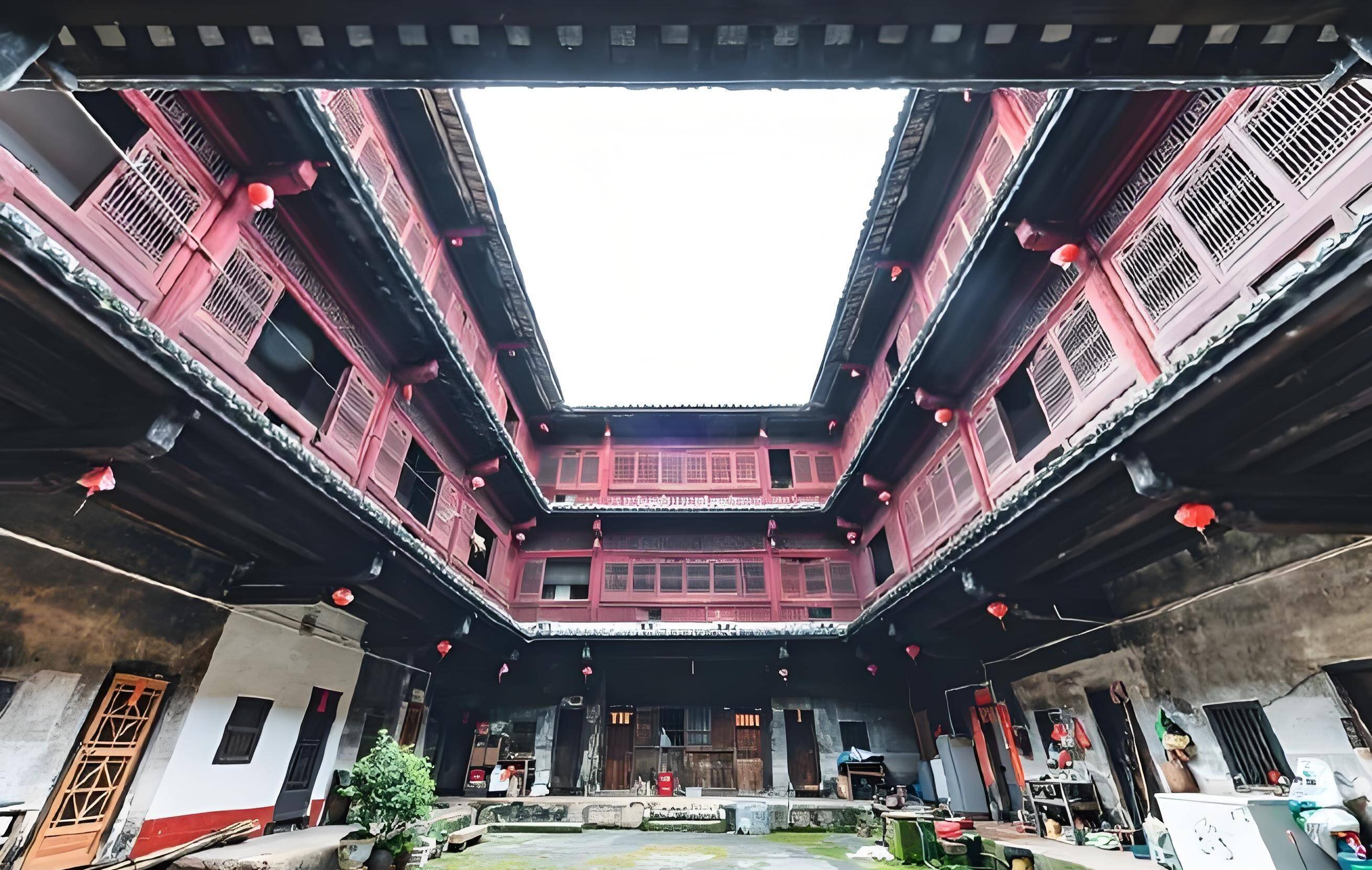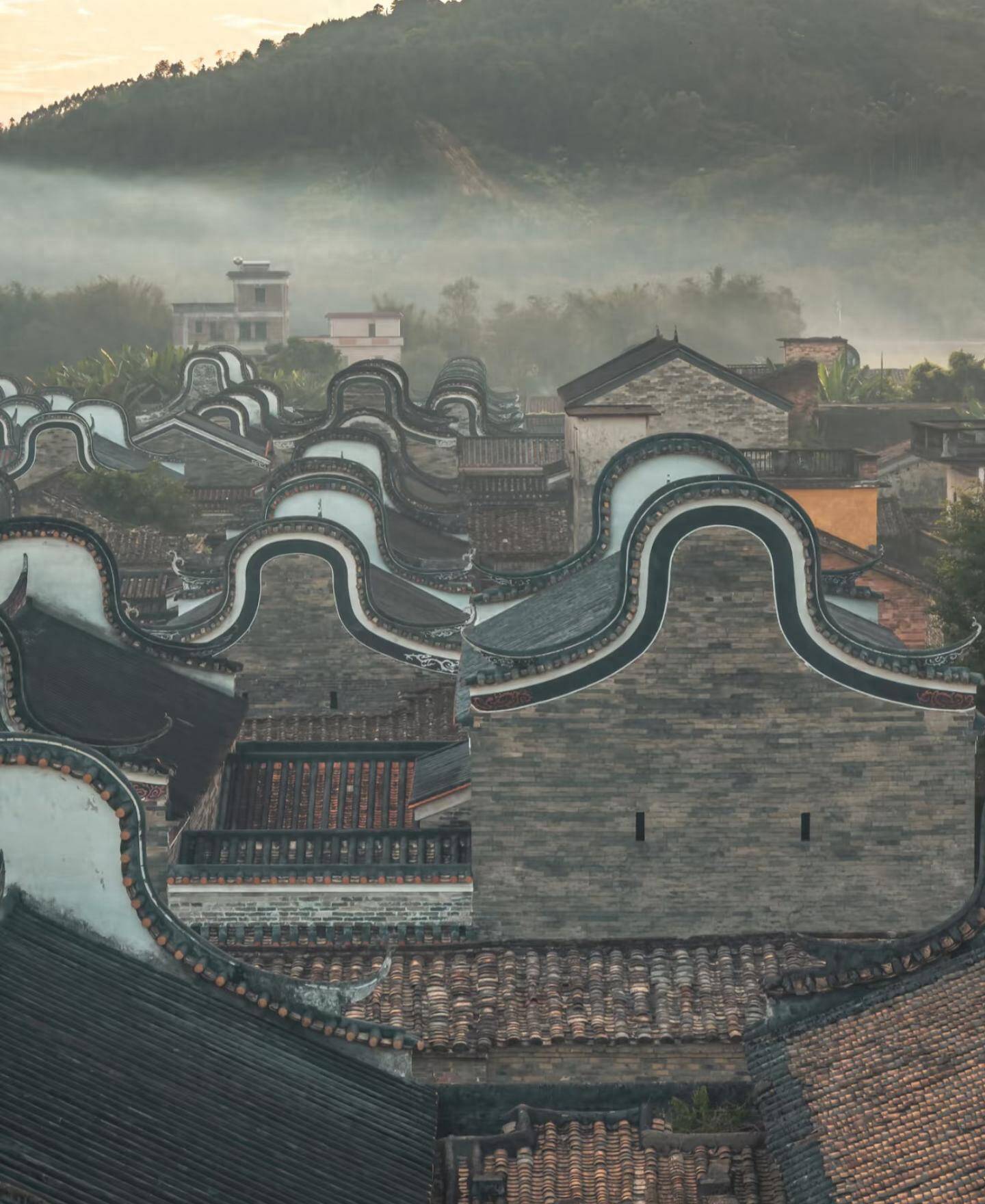 宋代立村,明清古建筑群268座,祠堂21座、书室19座,红砂岩围墙长860米,形如“巨蟹护村”,井字形巷道与古井、古榕构成活态宗族聚落样本。