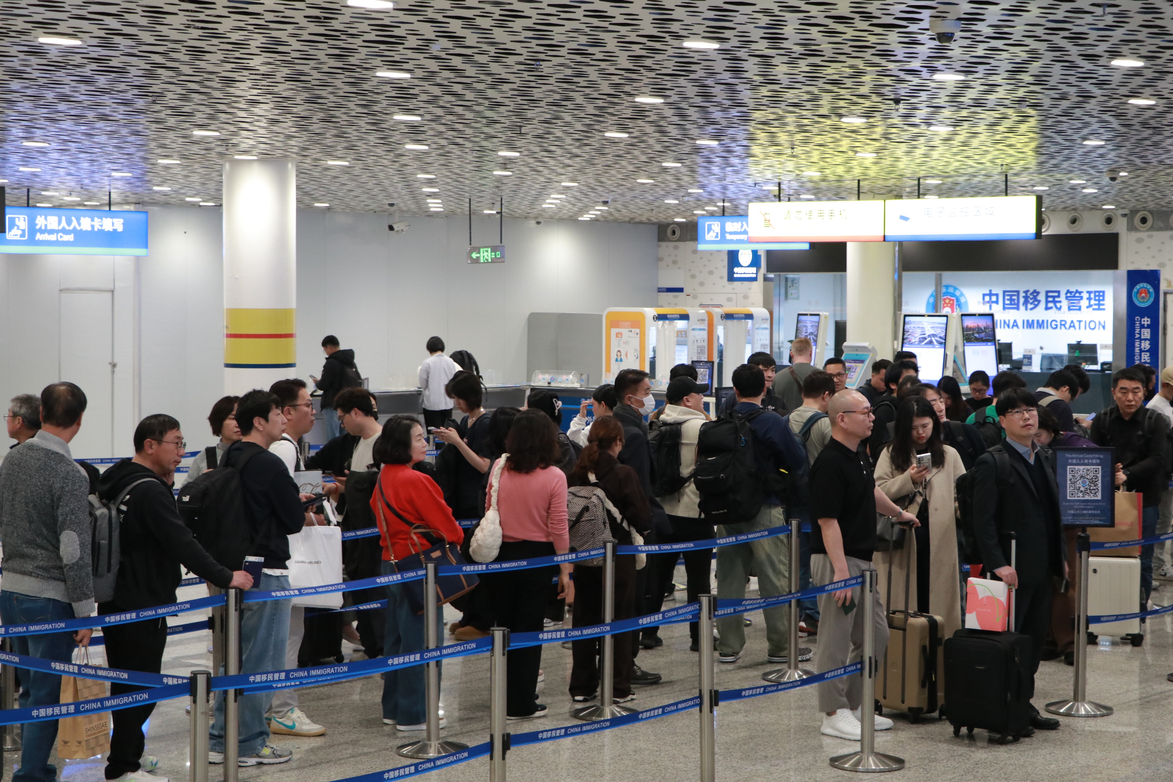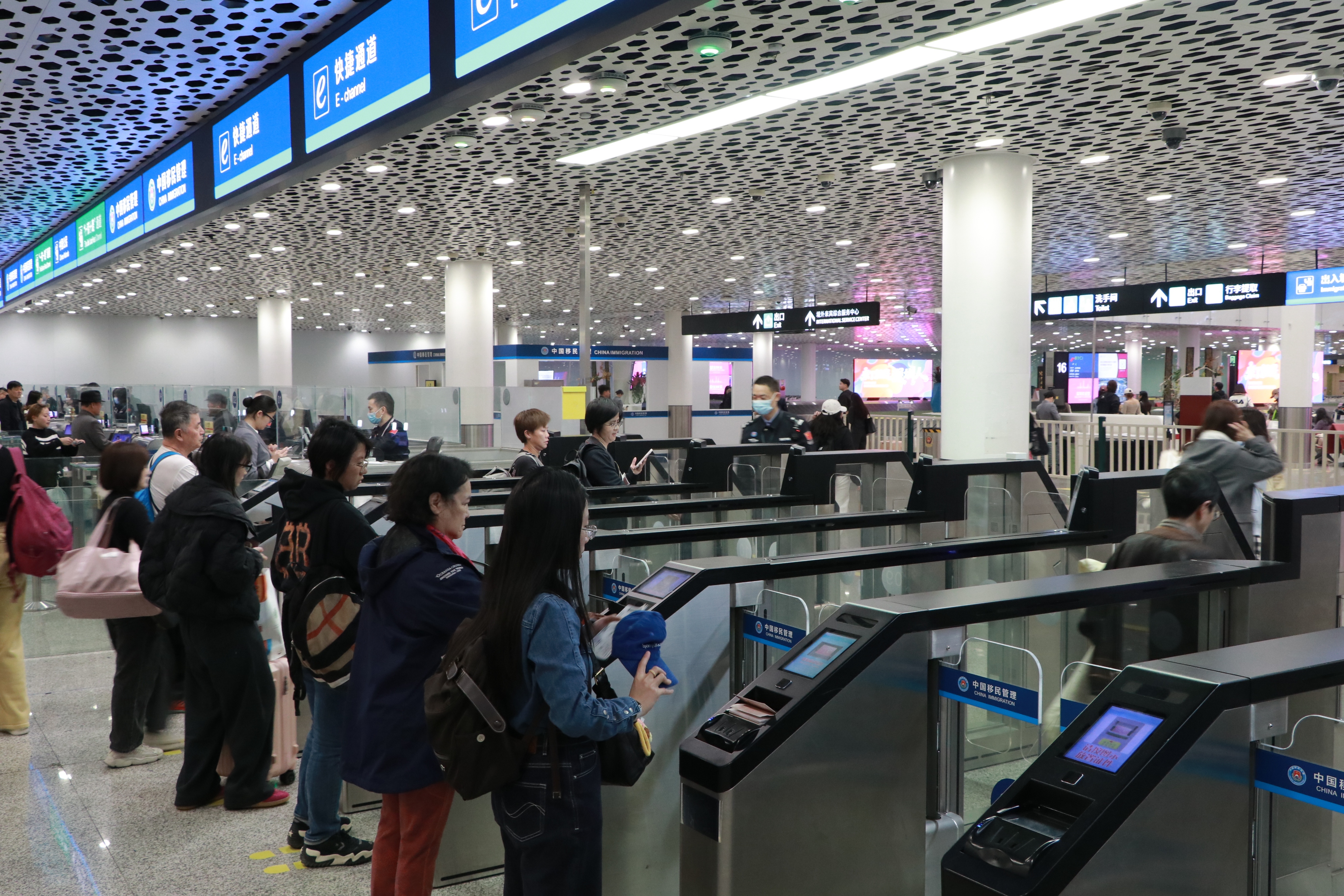 2月24日,春节假期后的第一天,中午时分,记者在深圳宝安国际机场出入境大厅看到,十余架次国际航班接连抵离,出入境客流仍高位运行。