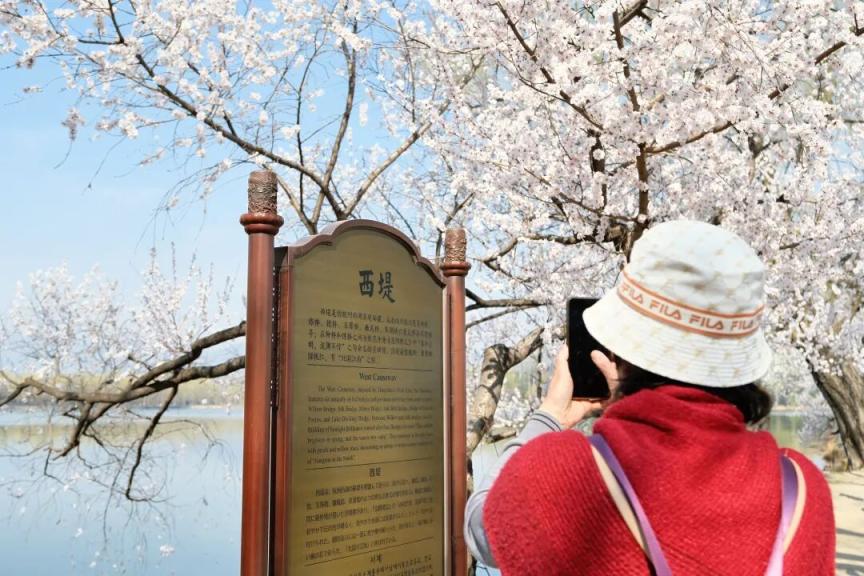 粉白花海与六桥烟柳相映成趣